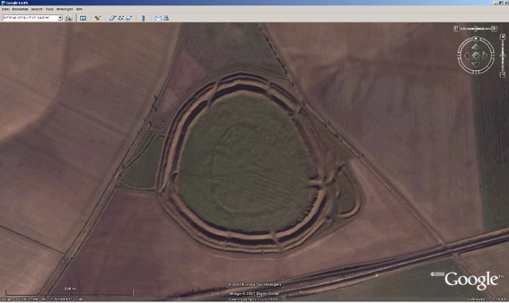 Eine weitere Vergleichsanlage heißt Yarnbury Castle und weist einen Durchmesser von 440 m auf; sie findet sich etwa 8,8 km westlich von Stonehenge bei GPS 51° 9'44.51"N 1°57'3.19"W