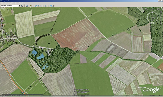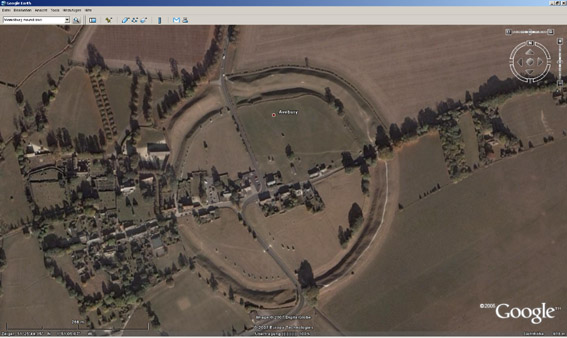 Der Durchmesser des Kreises bei Avebury in England beträgt 460 Meter, GPS 51°25'42.10"N 1°51'14.23"W
