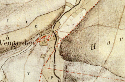 Würde man dieser Karte glauben, so wäre etwa direkt am Erftübergang vor dem Haus Ruhr ein Stück Weg die Erft entlang und dann zum Burgberg verlaufen. Die Genauigkeit obiger Karte muß also bezweifelt weden. Der gerade Erftverlauf stimmt nicht. Die Wege zum Burgberg stimmen nicht mit sonstigen bekannten Abbildungen. Der Mühlenbach wäre mitten durch das Brauhaus verlaufen und erst etwa am Schießstand in den Mersbach geflossen. Allerdings gibt die Karte auch Aufschlüsse etwa über den ehemaligen Weg von der Viehtrift im Oberdorf in Richtung Billig - direkt gerade den Berg hinauf. Sie zeigt den Weg gegenüber der Brauhausvorgängergebäude in Richtung Dederichs-Mühle und weiter zur Schorns-Mühle. Sogar die Grundstücksgrenze vom Schlösserhaus, an der vorbei einst der Fußweg nach Rheder verlaufen ist, läßt sich erkennen. Der Weg von Rheder entlang der Pfaffenhardt ist bis etwa Höhe des heutigen Kindergartens sichtbar. Vielleicht war die Furt zwischen Kreuzweingarten und Rheder einst an dieser Stelle. Hier muß berücksichtigt werden, daß die durchgeführten Böschungsarbeiten zur Errichtung der B 51 jedes Zeugnis vernichtet haben, daß die hohe Anschüttung und Erftbegradigungsarbeiten keine Rückschlüsse mehr zulassen. Im Vergleich mit anderen Karten eine ungenaue Urschrift, aber für noch weitere Recherchen ein kostbares Kleinod.